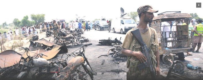 Cette tragédie intervient alors que nombre de Pakistanais sont sur les routes pour rejoindre leur famille à l’occasion des festivités d’Aid-al-Fitr, fête musulmane majeure marquant la fin du mois sacré du ramadan. Des riverains déambulaient parmi des dizaines de corps et véhicules carbonisés, après la catastrophe qui a eu lieu près de la ville d’Ahmedpur East, à 500 km au sud de Lahore.