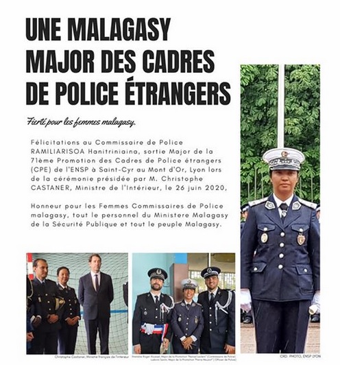 Antananarivo, 27 Juin, 13h55 – Quand le journalisme mène à l’excellence dans le monde de la police. Hanitra Ramiliarisoa, ancienne journaliste, est sortie « major de promotion des cadres de police étrangers » de l’Ecole nationale supérieure de la police de Saint Cyr. Commissaire de police à Madagascar, elle fait partie des 16 stagiaires non-Français ayant suivi cette formation de dix mois dans cette grande école française.