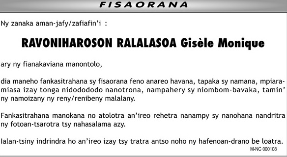 Nodimandry Rtoa Ralalasoa Gisèle Monique