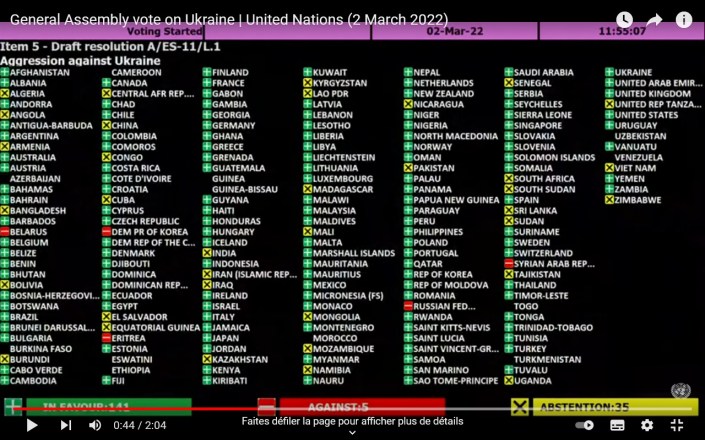 L’Assemblée générale « exige également que la Fédération de Russie retire immédiatement, complètement et sans condition toutes ses forces militaires du territoire ukrainien à l’intérieur des frontières internationalement reconnues du pays ».