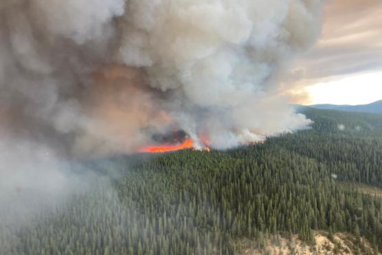 Feu de forêt aux abords de la Little Blue River, dans l’ouest du Canada, le 10 juillet 2023. – / AFP