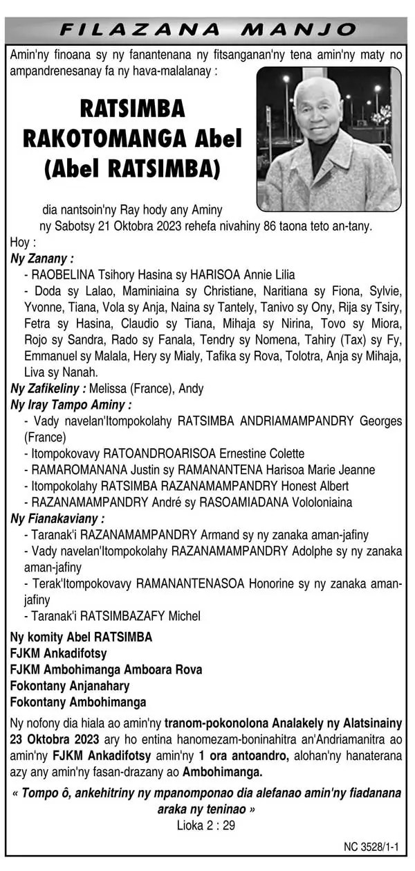 Cette entrée a été publiée dans Culture, Famille, Kanto sy Hira, Malagasy, Société et taguée Abel Ratsimba.