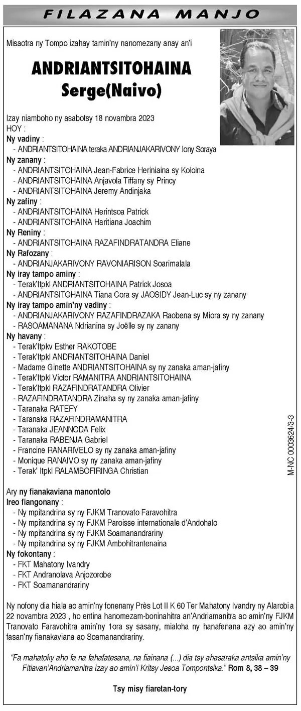 Cette entrée a été publiée dans Culture, Famille, Société et taguée Serge Andriantsitohaina.