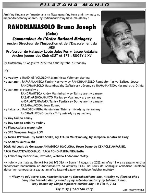 Miombona alahelo amin’ny Fianakaviany sy ny Fiangonana manontolo.