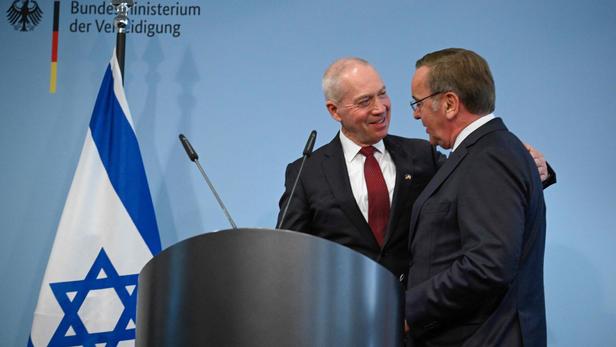 Le ministre allemand de la Défense Boris Pistorius (droite) et le ministre israélien de la Défense Yoav Gallant (gauche) à Berlin, le 28 septembre 2023. TOBIAS SCHWARZ / AFP