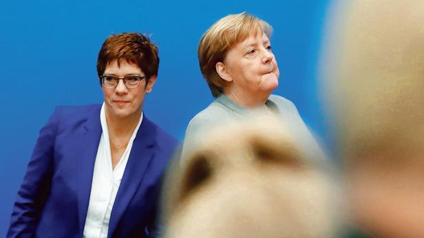Le couple au féminin de la politique allemande est aujourd’hui dans la tourmente. Annegret Kramp-Karrenbauer, dite «AKK», la dauphine, a officiellement abandonné ses prétentions à succéder un jour à sa marraine, Angela Merkel, qui avait pourtant soigneusement préparé sa succession. AKK abandonnera, d’ici à la fin de l’année, selon ses vœux, la présidence du parti, le temps de renouveler sa plateforme politique et de désigner un chef qui sera en même temps candidat à la chancellerie. «Je regrette cette décision», a commenté lundi la chancelière, dont les jours sont eux-mêmes comptés, du moins par ses nombreux adversaires.
