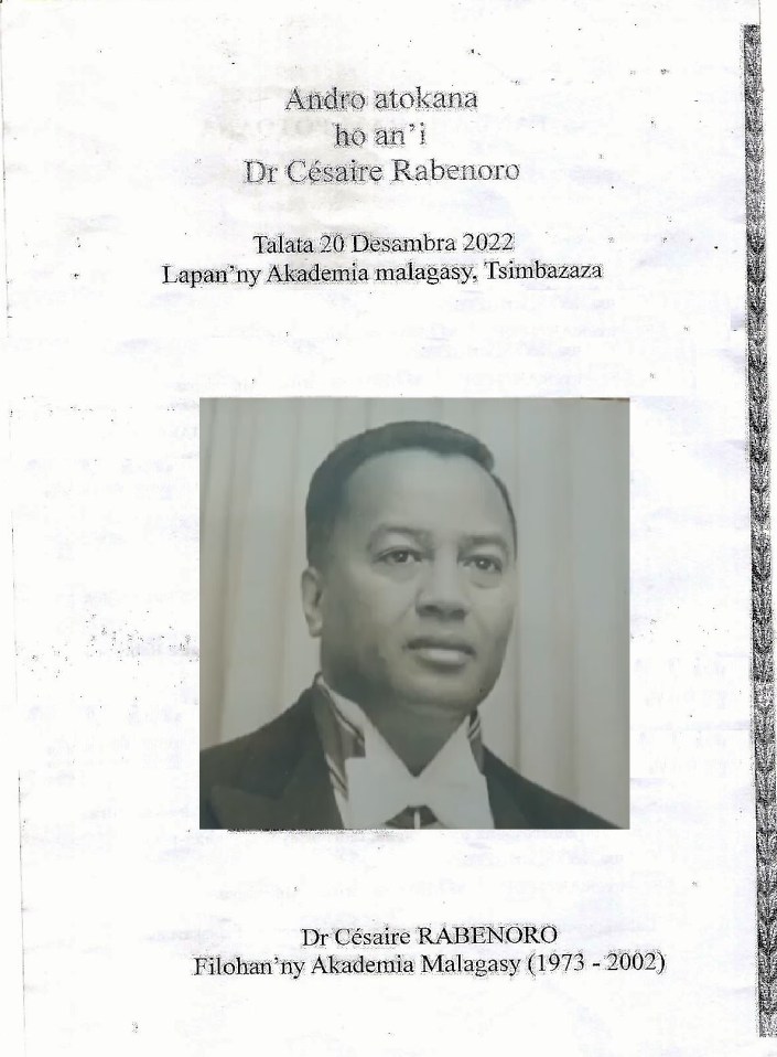 La journée d’hier a été consacrée par l’Académie malgache à la commémoration du Dr Césaire Rabenoro, un diplomate malgache et un homme de science émérite qui a été à la tête de cette académie, de 1973 à 2002, à l’occasion du 20ème anniversaire de sa mort.
