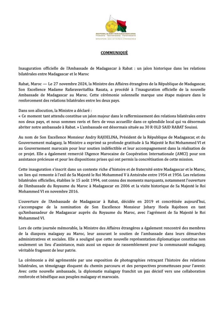Inauguration officielle de l’Ambassade de Madagascar à Rabat
