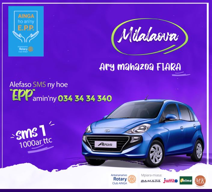 Ho an’izay mbola tsy nandray anjara, manasa anao andefa EPP amin’ny 034 34 34 340 (mpanjifa telma ihany) fa mety ianao no hahazo ilay Hyundai Atos vaovao izay hitanao amin’io horonantsary io.